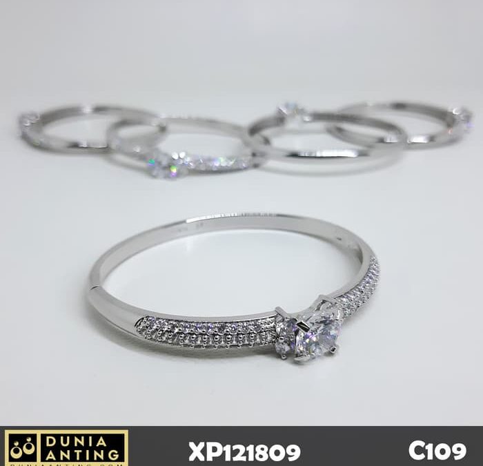 C109 Gelang Silver Mata Besar Swarovski Kristal Platinum Imitasi